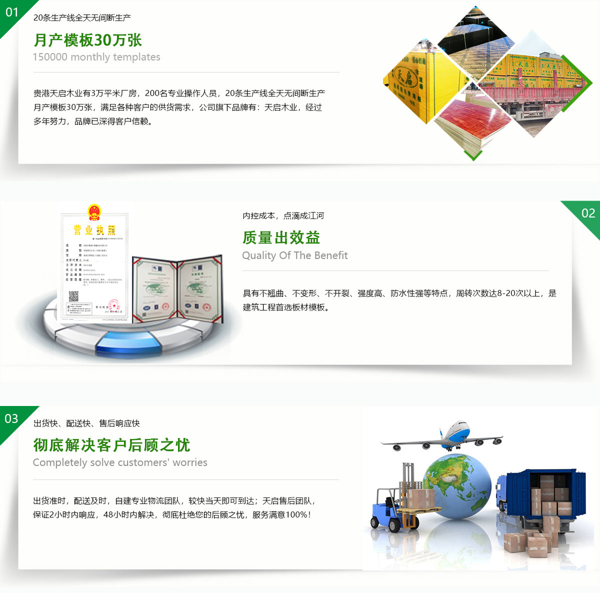 貴港市天啟木業(yè)位廣西貴港市覃塘區(qū),是中國建筑模行業(yè)規(guī)模十大的企業(yè)之一,有著優(yōu)越地理位置,臨廣東,貴州,湖南,云南、交通運輸區(qū)位十分優(yōu)勢。現有職工近300人,占地50余畝,其中建筑面積近3萬平方米。日產量2萬張,年產量500萬余張;公司正在逐步壯大,旗下有4家分公司,總年產量近1500萬張!天啟木業(yè)引進芬蘭制膠技術,采用先進生產工藝。公司生產的建筑膜板采用優(yōu)質的防水膠制作,循環(huán)使用次數多,品質在同行業(yè)內認可度極高。是一家集產品研發(fā),生產,銷售,服務于一體的綜合型大型民營企業(yè)。產品覆蓋全國20多個省,市,自治區(qū)。